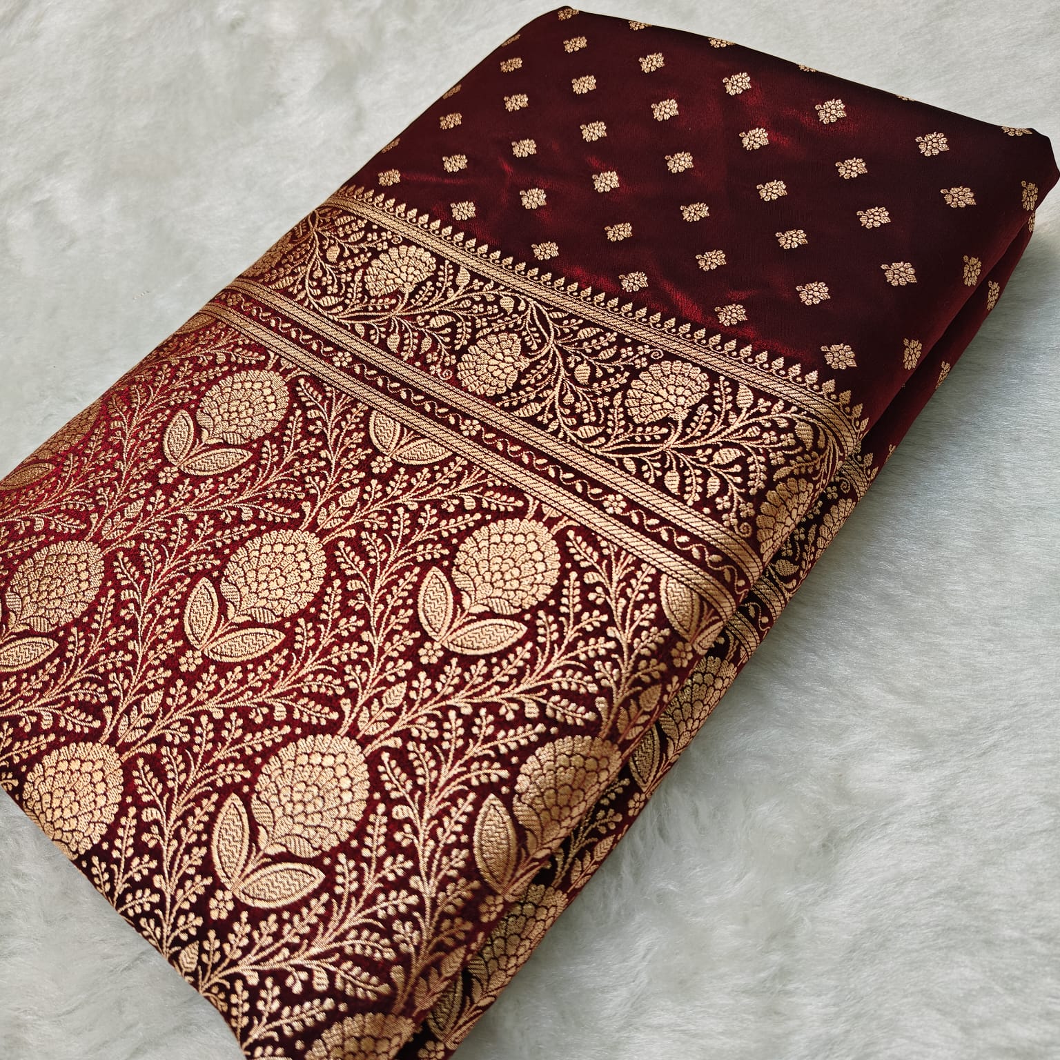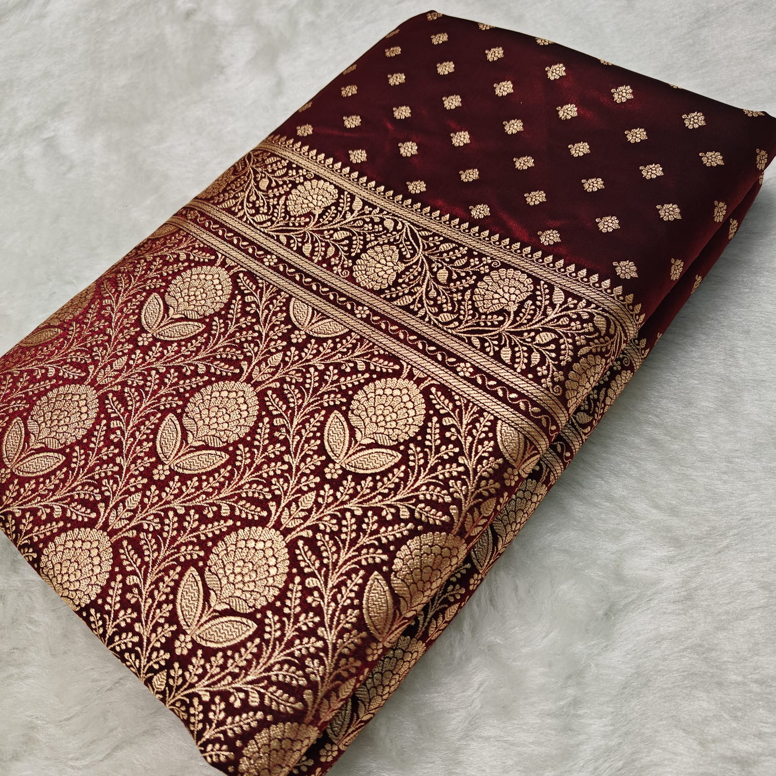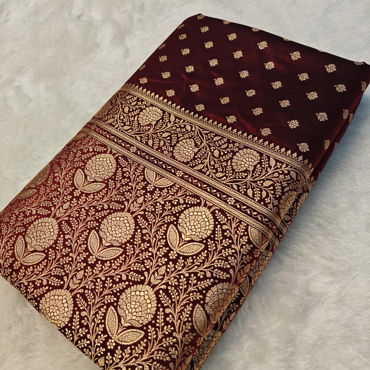 Elevate your ethnic wardrobe with this exquisite satin silk saree in rich brown. Crafted from premium quality silk, this saree showcases a luxurious satin finish that drapes beautifully and catches light elegantly. The sophisticated brown hue complements all skin tones and pairs effortlessly with traditional jewelry and accessories. Perfect for weddings, festivals, and special occasions, this versatile piece combines timeless elegance with contemporary appeal. The smooth texture ensures comfort throughout wear while maintaining its refined appearance. An investment in classic style that transcends seasons.