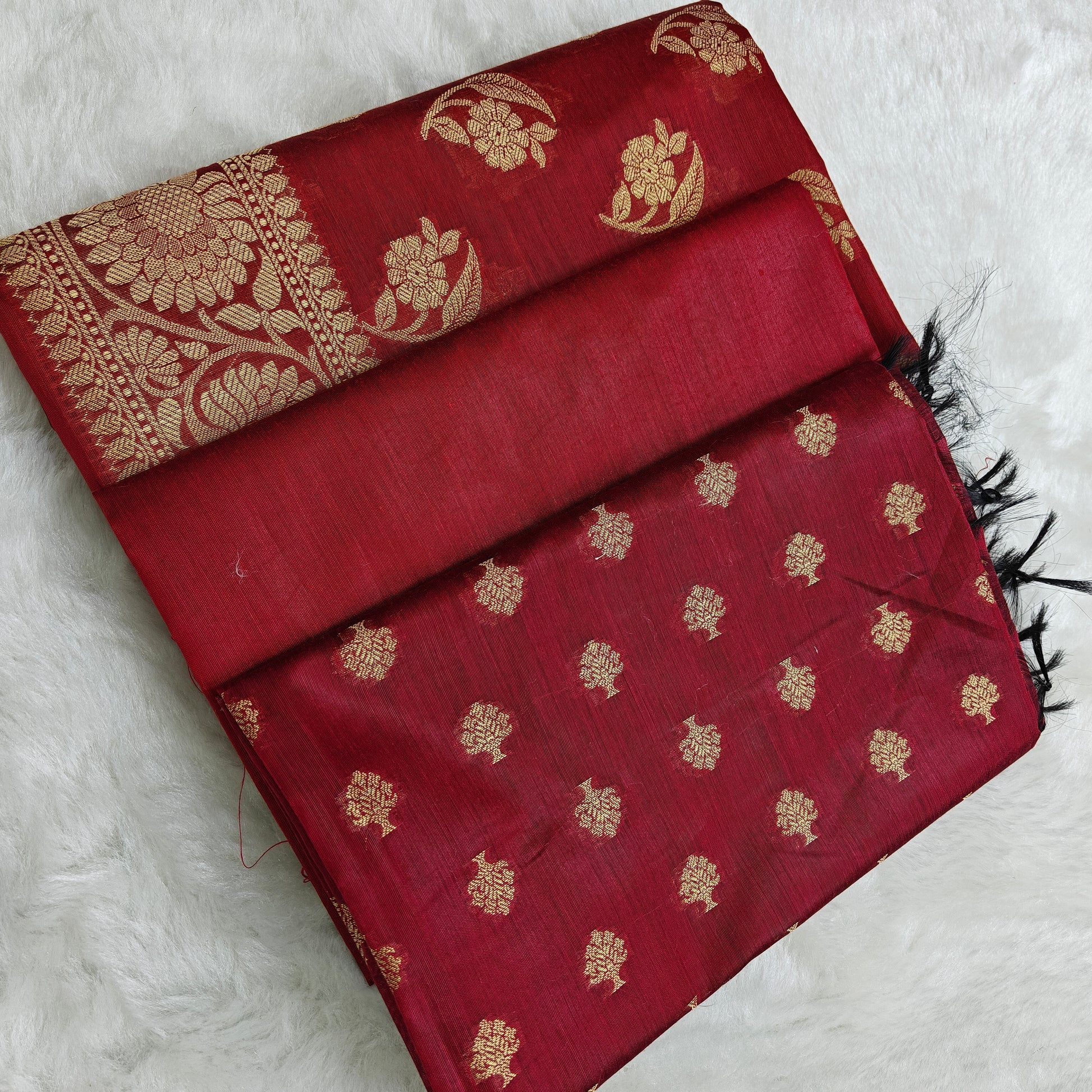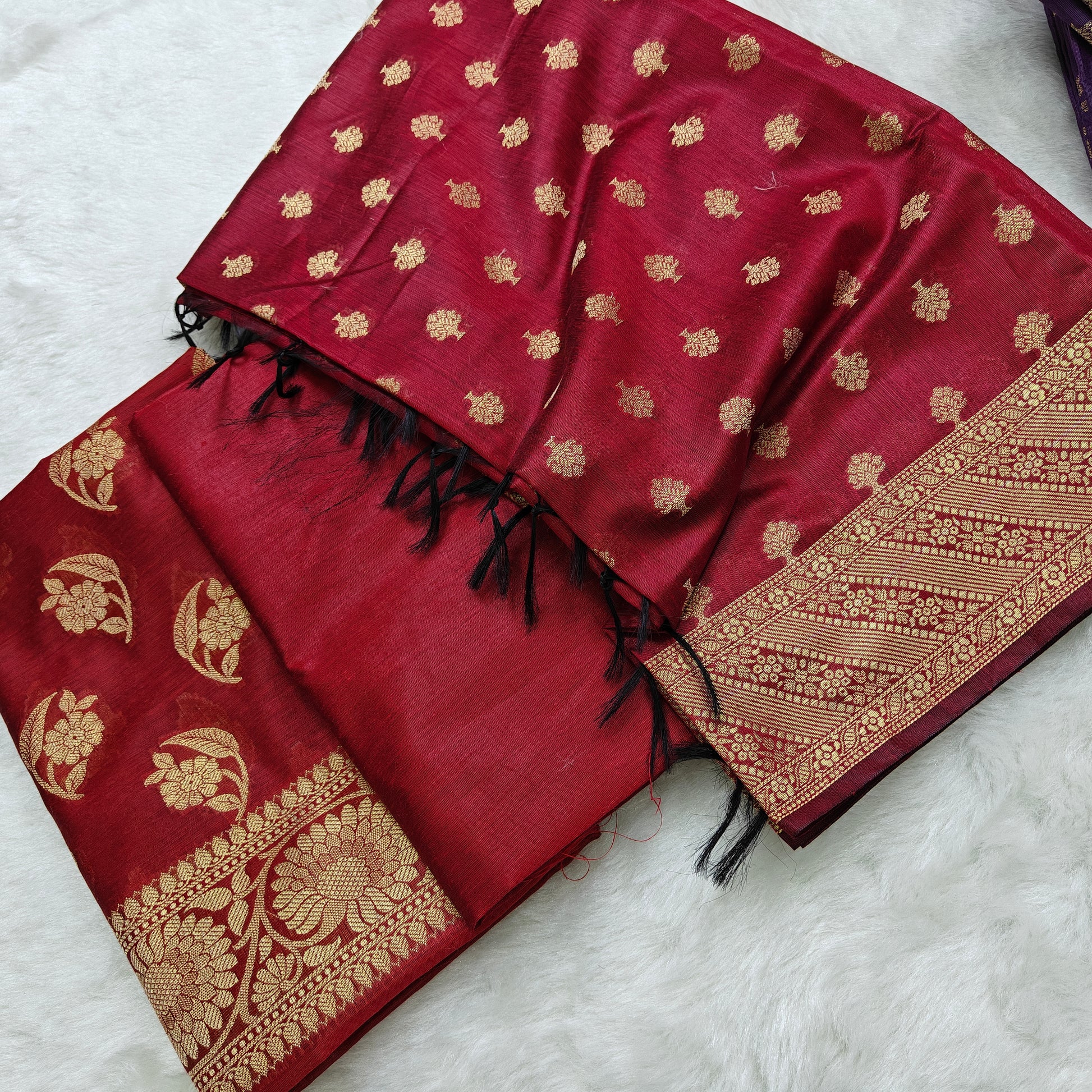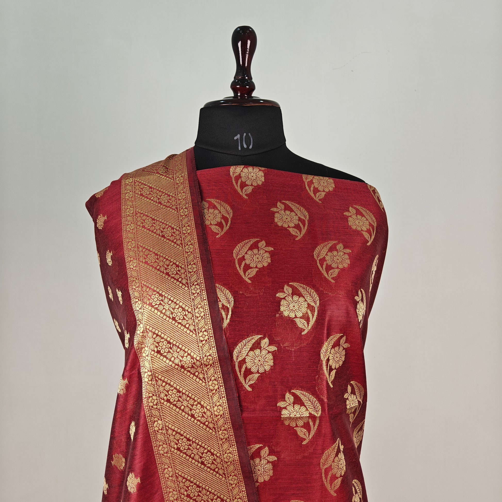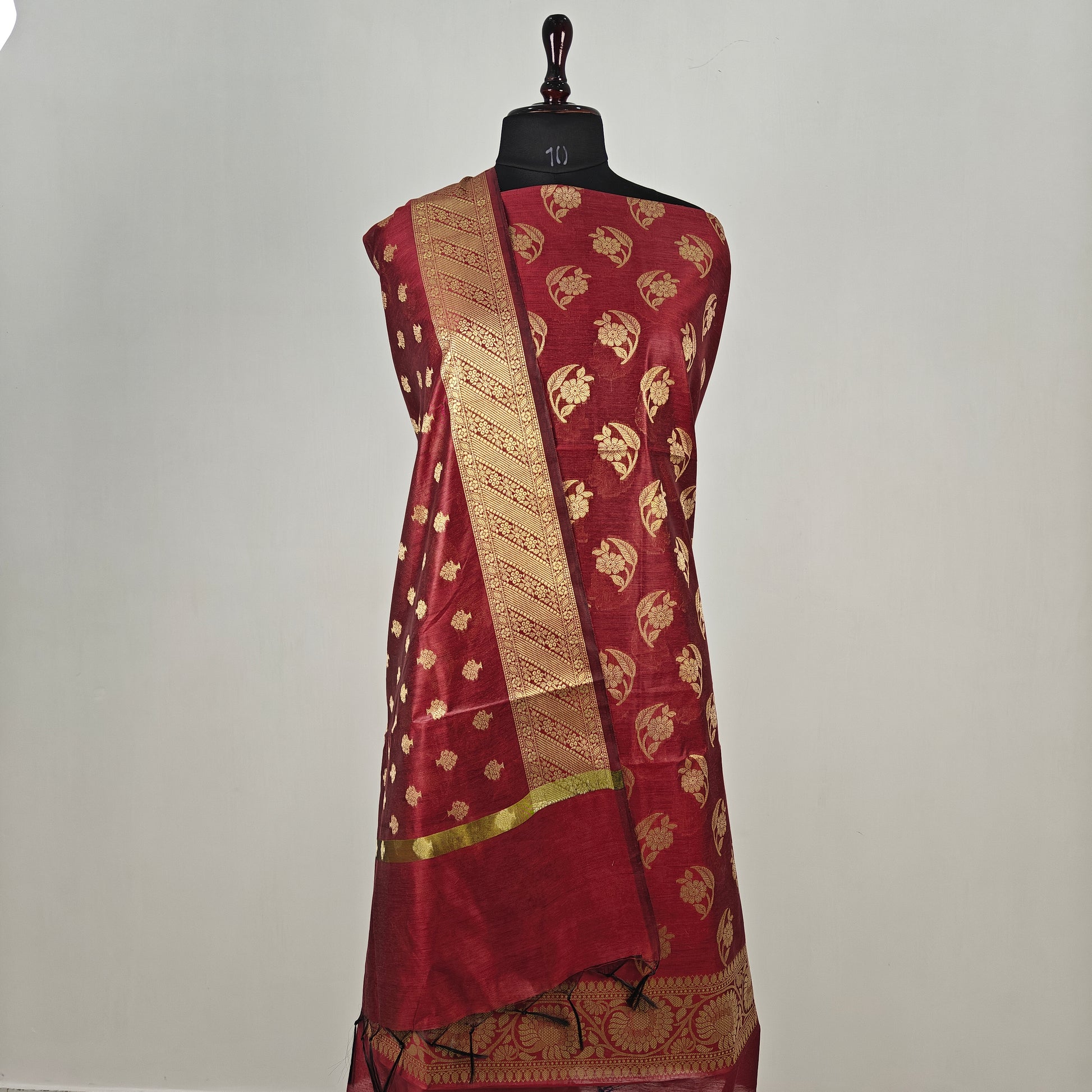 Banarasi cotton 3pcs suit in dark maroon