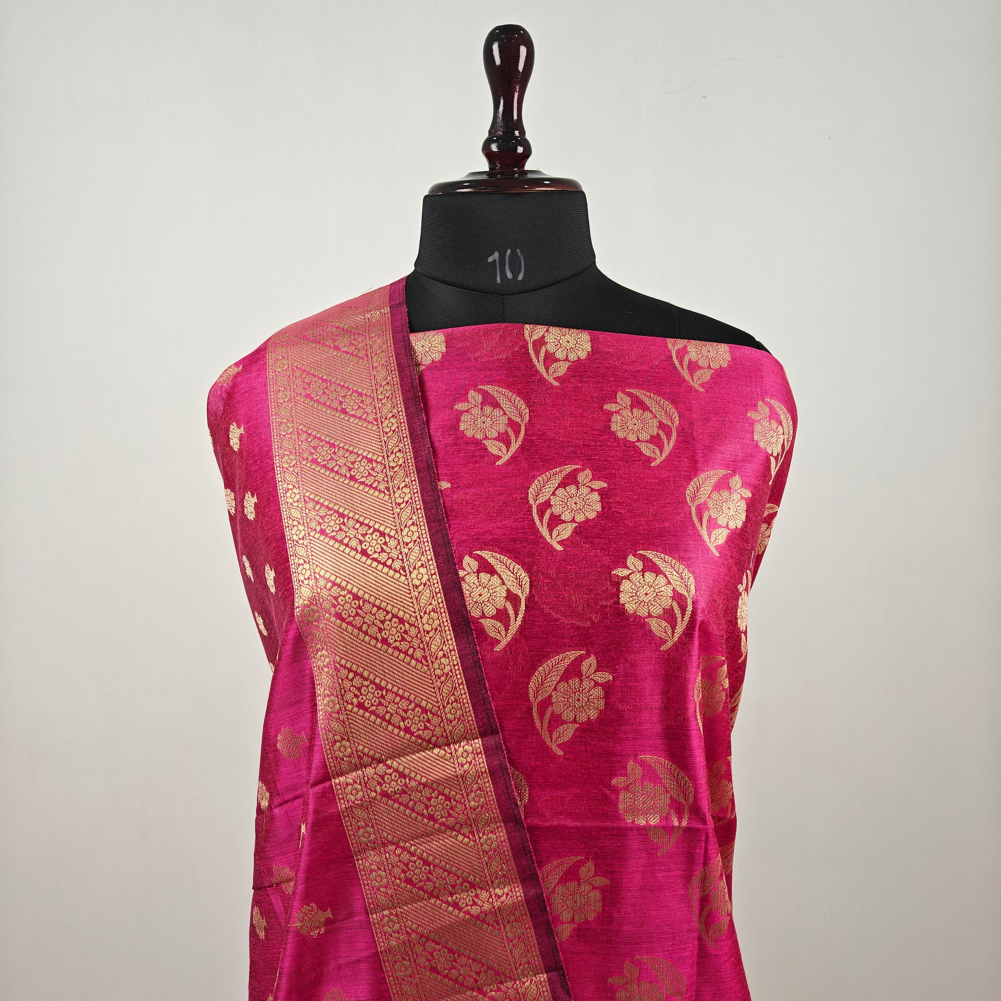 Banarasi cotton 3pcs suit in Rani pink