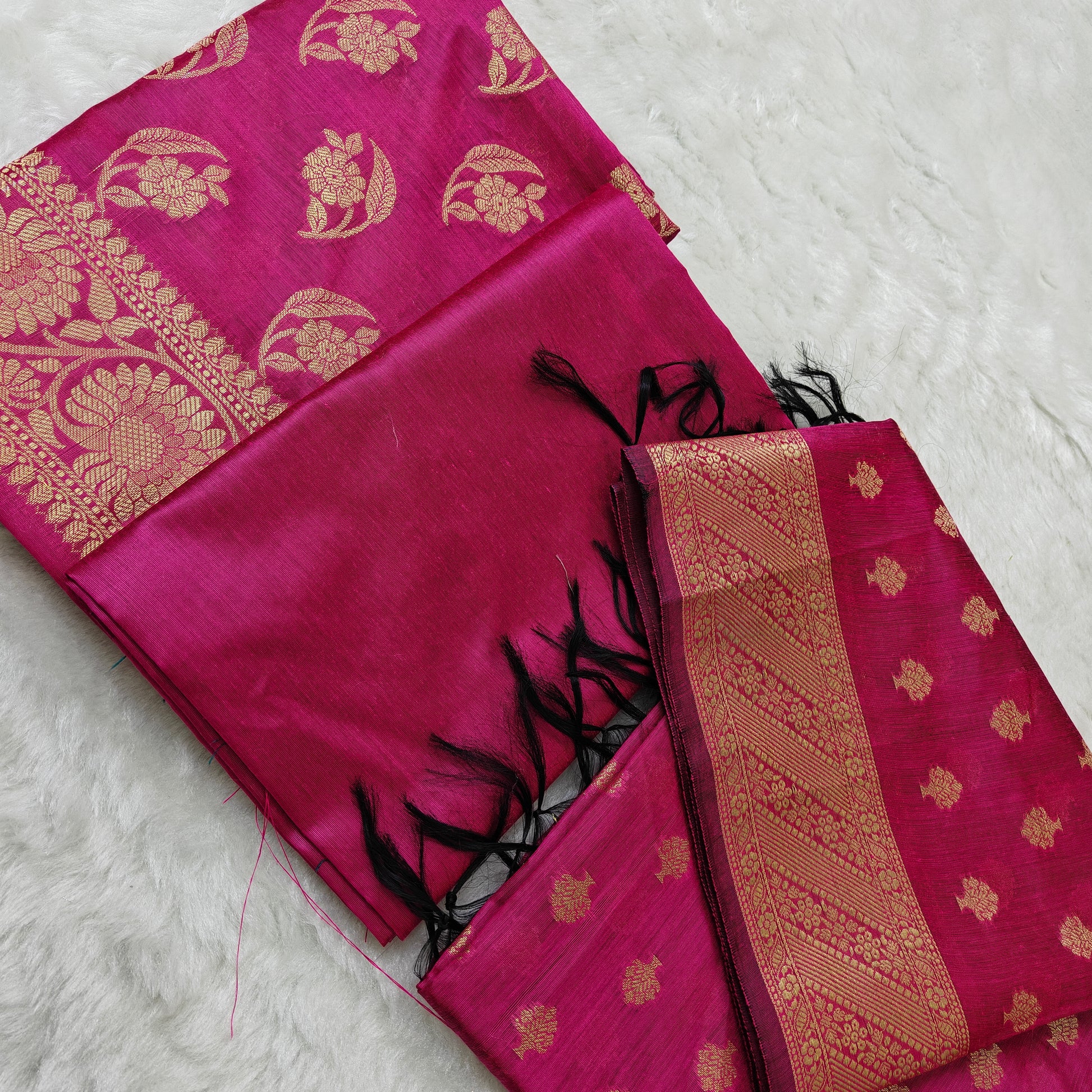 This banarasi cotton 3pcs suit in Rani pink is crafted from high-quality, handwoven fabric that showcases the traditional art of Banaras. With its elegant design and vibrant color, this suit is perfect for any occasion, adding a touch of sophistication and style to your wardrobe. Upgrade your fashion game with this timeless piece.