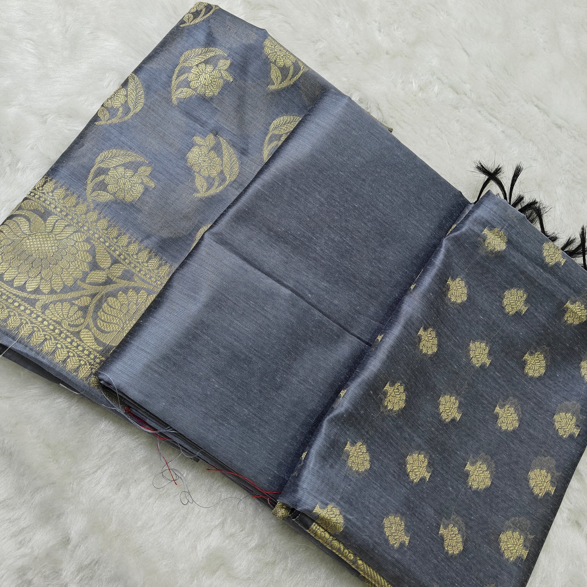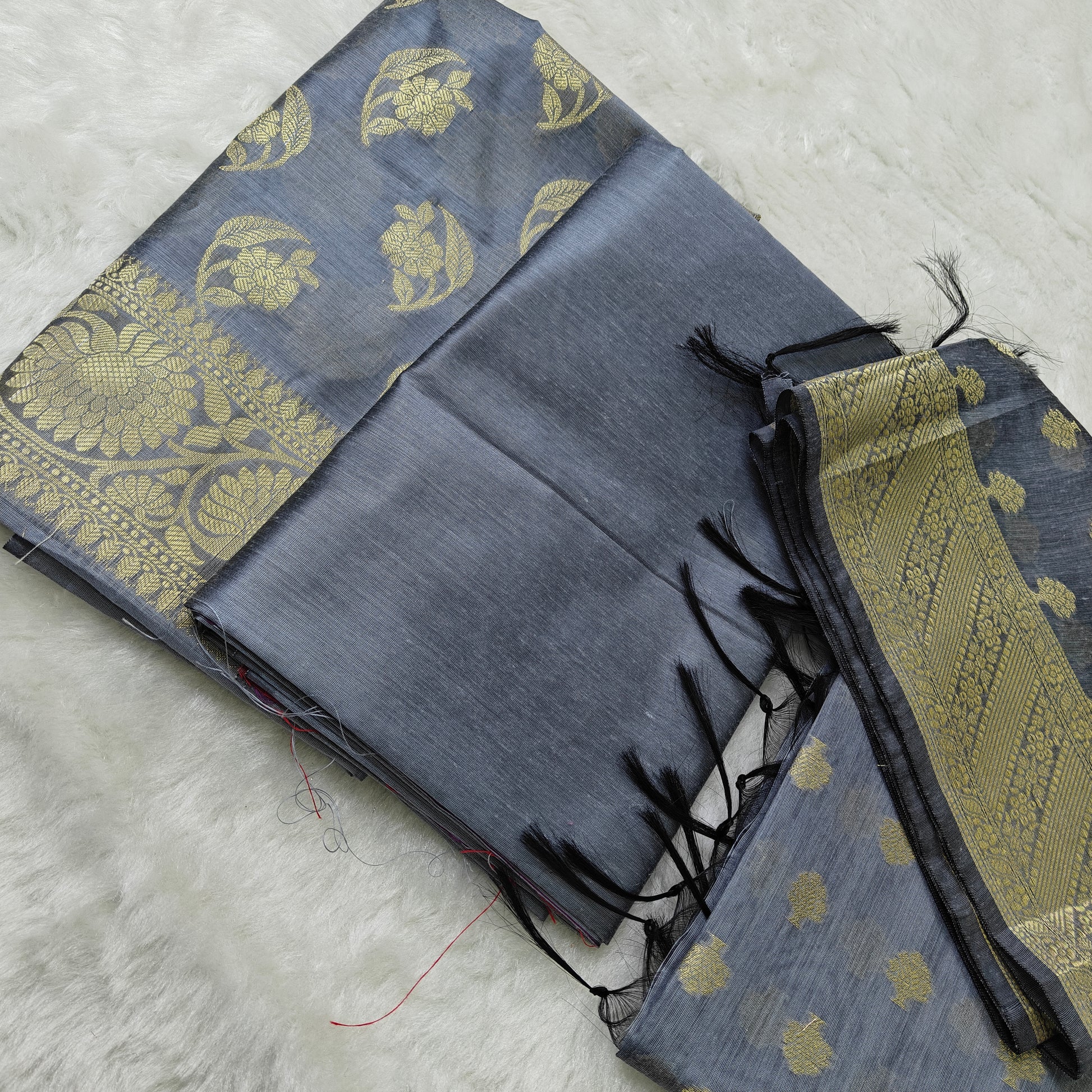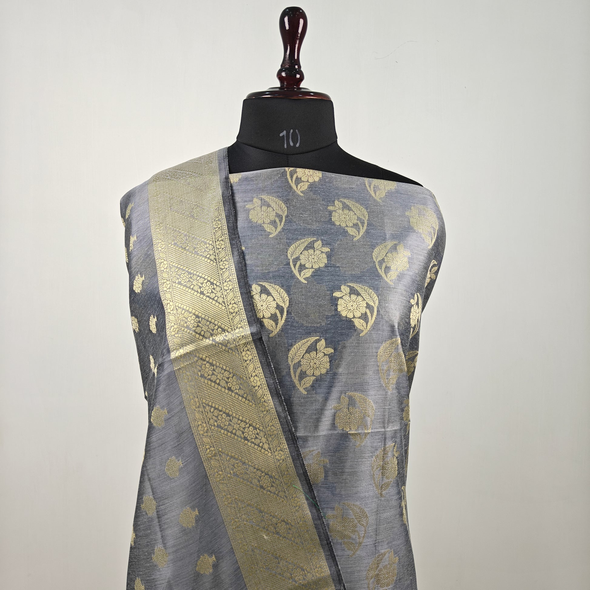 Banarasi cotton 3pcs suit in Steel Grey